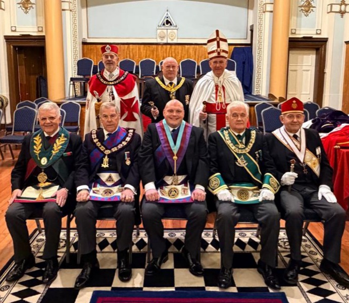Saturday 14th March 2026, The Right Eminent District Grand Prior Nigel Spike, attends the installation of MEC Gordon McAlpine as Grand Superintendent of The Provincial Grand Royal Arch Chapter of Lanarkshire Middle Ward. Here we see The DGP with the other Orders and The MEC Gordon McAlpine. The District Grand Priory of Strathclyde wish Gordon the Very best wishes for his term in office.