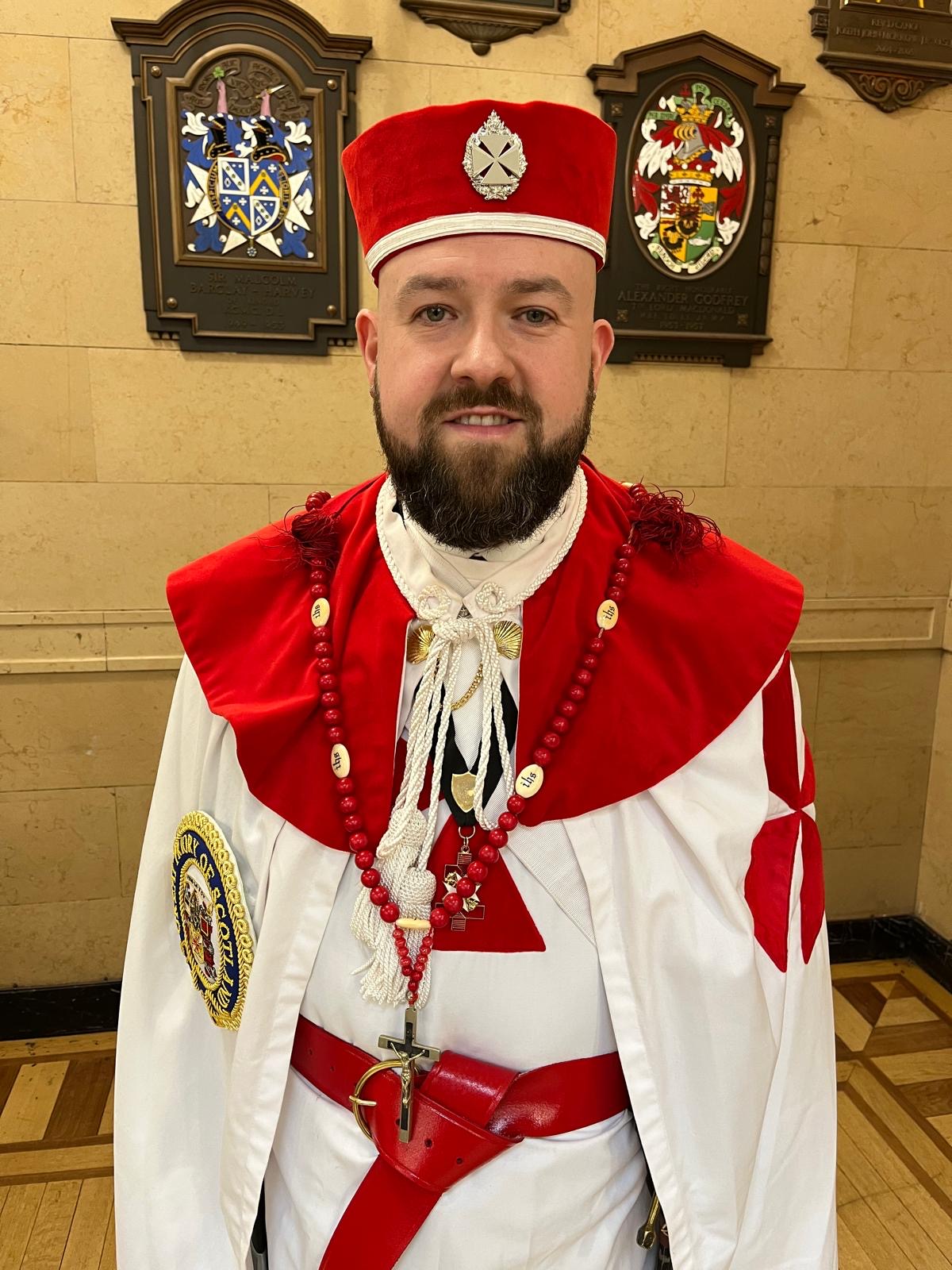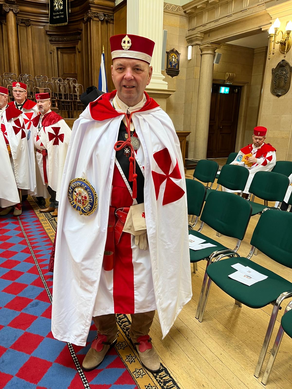 Tuesday 17th March 2026, Past District Grand Prior Kier Brown was Invested as Knight Commander of the Temple at the Annual Muster of the Great Priory of Scotland.